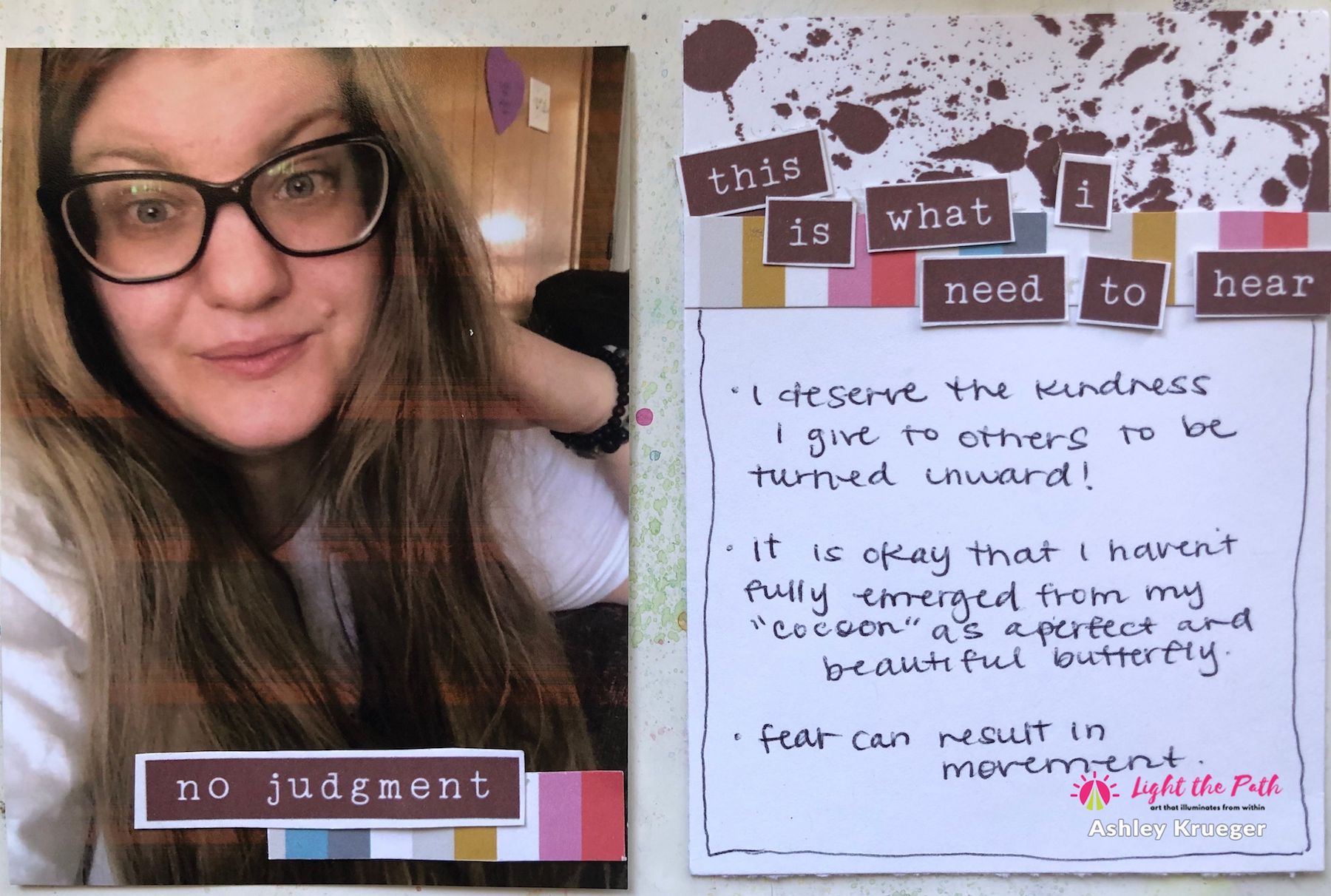 Happy May friends, Ashley here! Today, I am sharing my pocket page layout for the May prompts in the Light the Path workshop. This month we are highlighting the things we need to hear to keep us in a good space. For this project, my focus was the things I need to remember in regards to my healing journey.